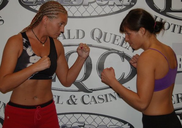 Keri Scarr (left) and Stephanie Webber (right) at Weigh-ins