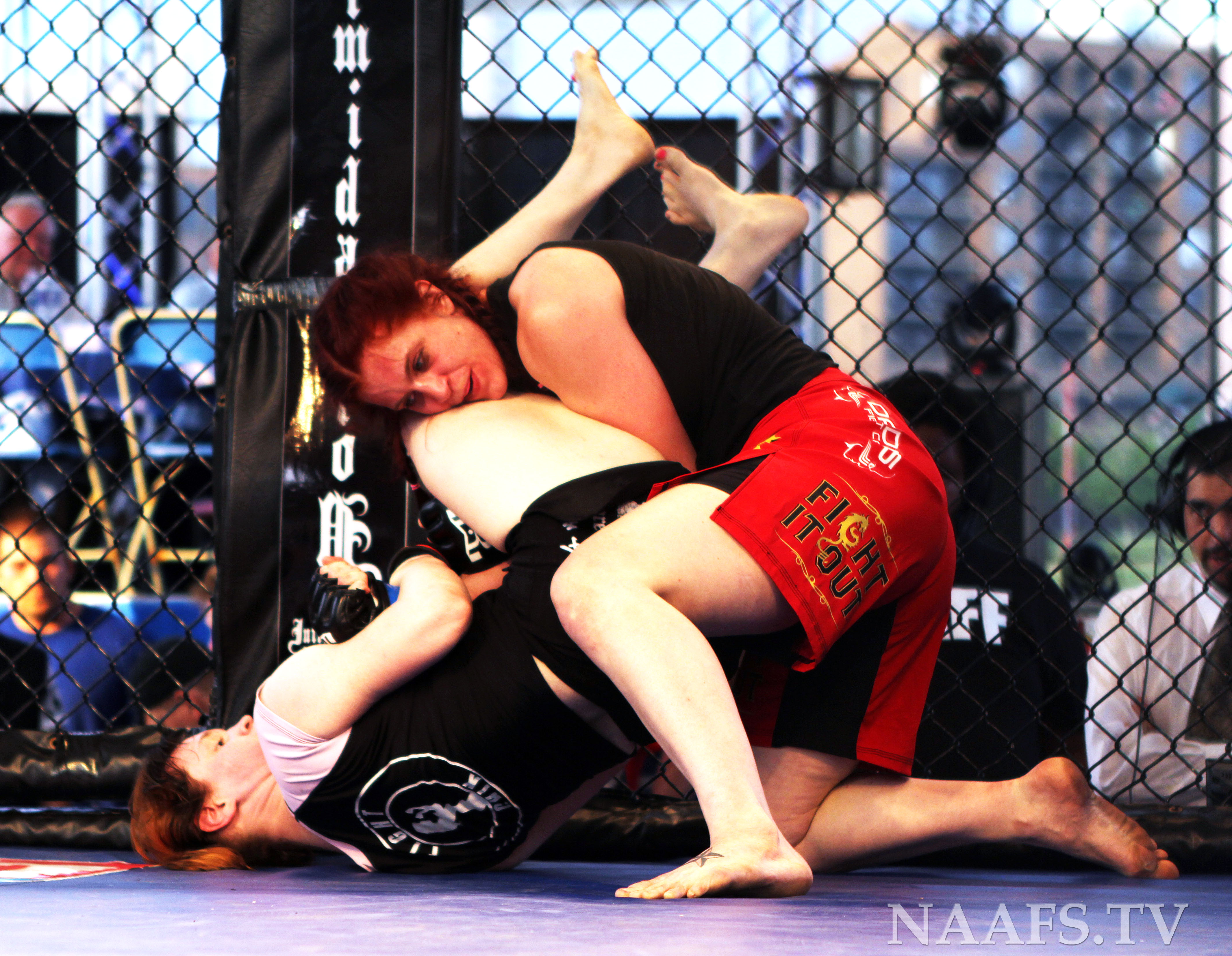 Caplan (bottom) goes for an armbar on Morgan (top)