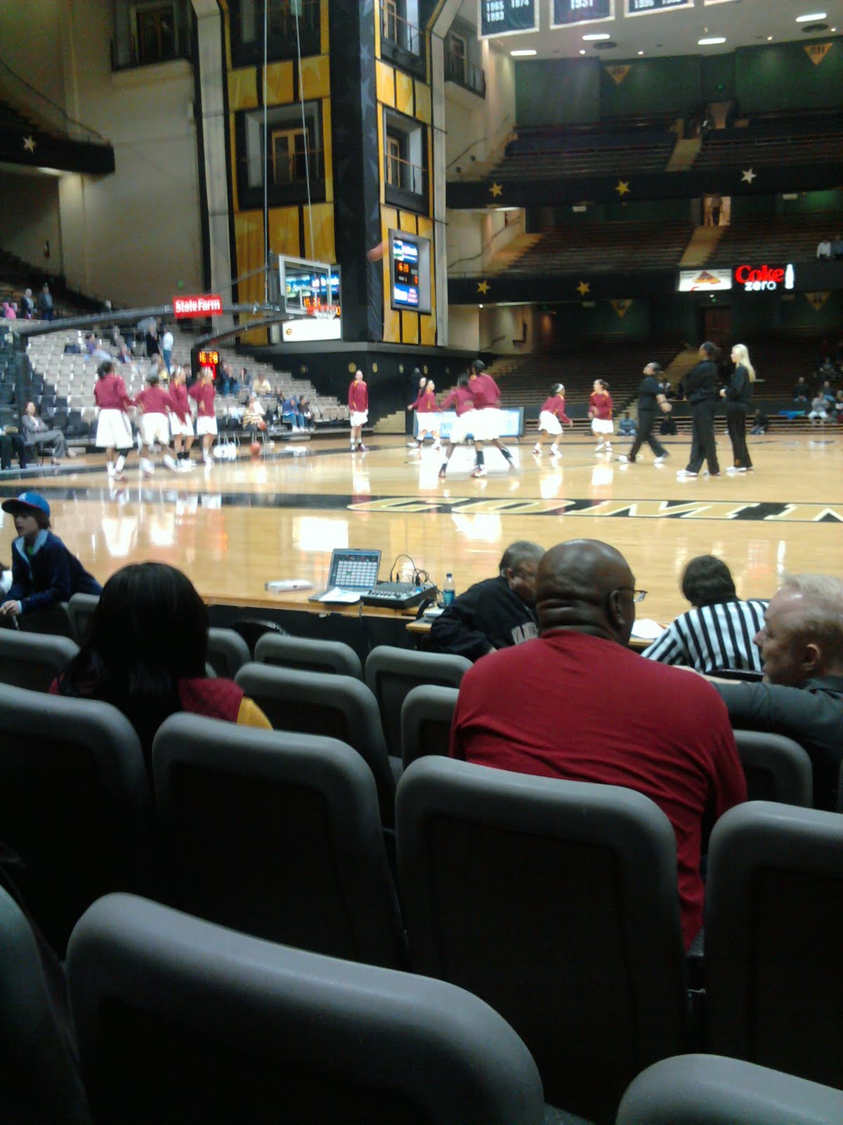 The benches in Vanderbilt are on the baselines, not the sidelines. This was Vanderbilts bench. Vandy beat Quinnepac, 111-53.