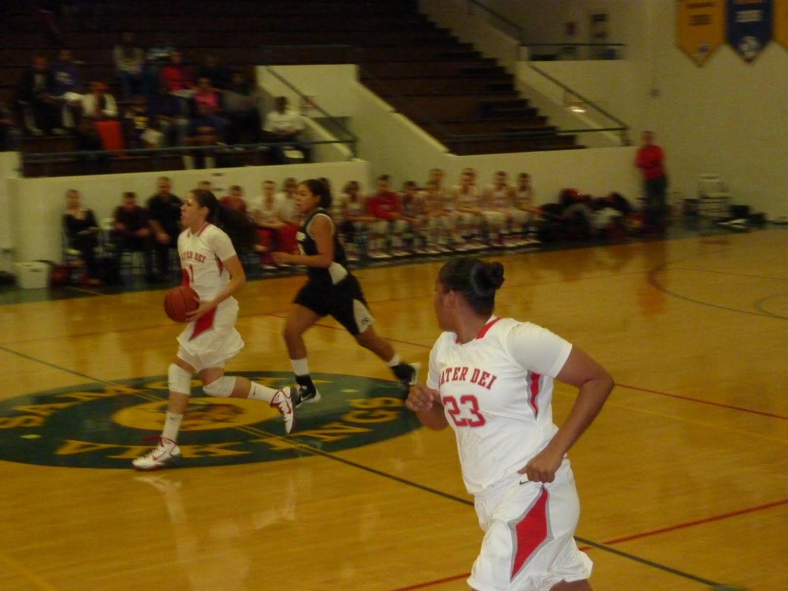 Mater Dei's strengths are that they play together as a complete unit, and they all have 100 percent court vision. One athlete knows where her teammate is before she even turns around, and is ready to pass the ball to her. If a player is about to miss a shot, two other players have already seen that the shot is off and are under the basket to get the rebound. It's really something. I wasn't going to watch the whole game, but found myself staying for the "wow" factor. The Monarchs look much better than when I saw them lose to Long Beach Poly in November.