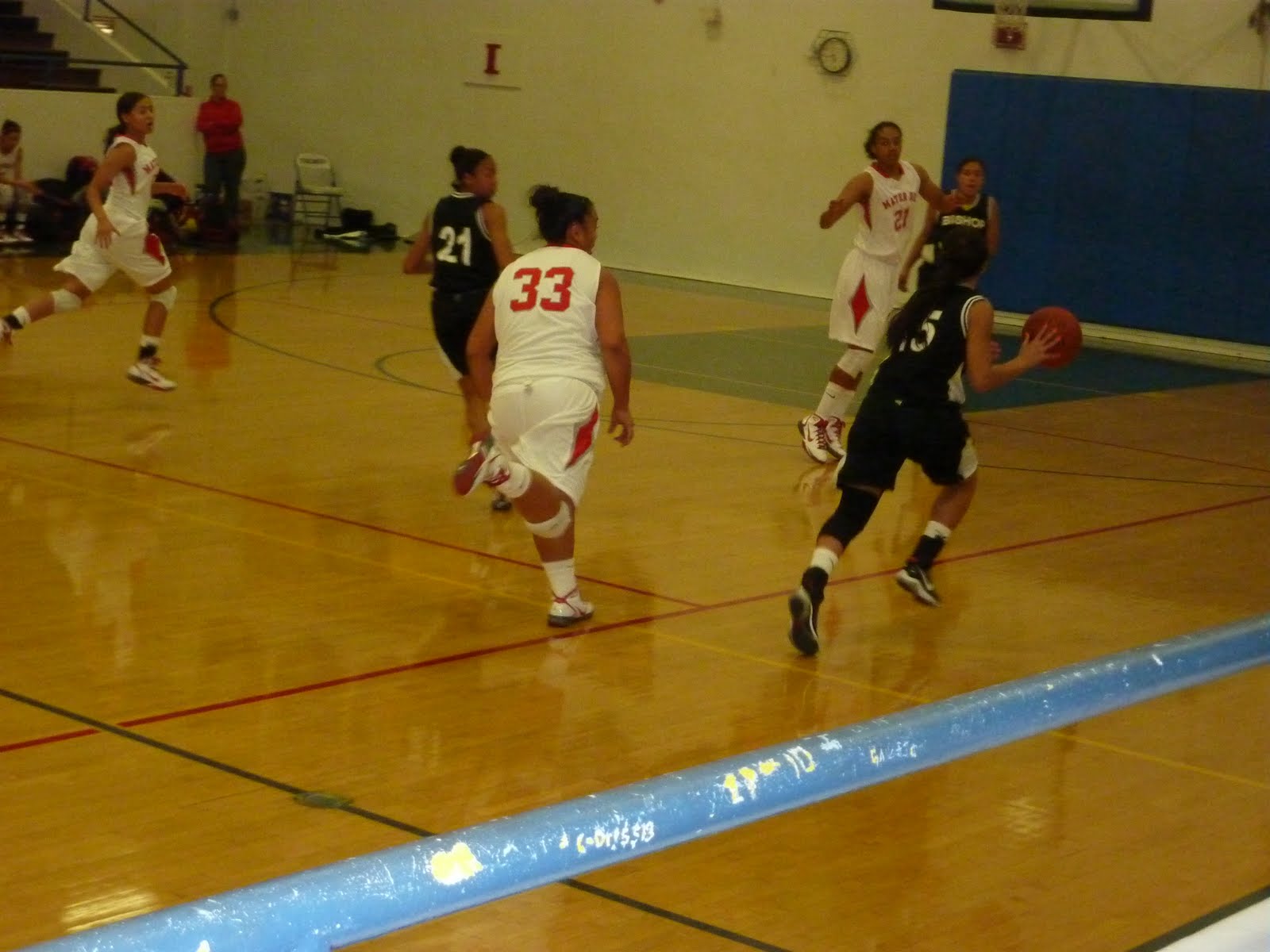 Mater Dei had their faults. In fact, they were missing many shots - especially Mosqueda-Lewis - who somehow still collected the "player of the game" award for her team on the night. There were two times I can think of when the Monarchs got four rebounds in a row and still couldn't put the ball in the basket, under the basket. But they were getting all the offensive boards, which is the point.