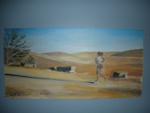 In addition to her life as a professional runner, Donaghue coaches high school cross-country and track and and field in State College, PA. Unlike many professional runners who train full-time, she balances the demands of working and training. When she is not running or coaching, she pursues her passion for art and photo-realism. Two of her paintings are posted in the interview below. You can read more about Donaghue, her coaching and her training on her blog, Running Rebecca.