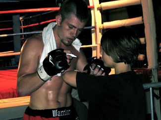 Overall it was a great show, from the ring girls in their acrylic light-up platform heels to the posses, banners, flashy satins and soundtracks that some of the favorite fighters paraded in to their matches with. And some really great fights.