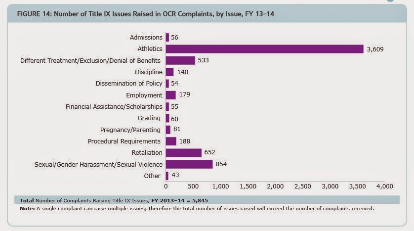 Athletics. Complaints about athletics constitute the overwhelming majority of the agency’s Title IX-related work, notwithstanding the rising number of sexual assault and harassment complaints that we’ve seen in recent years.