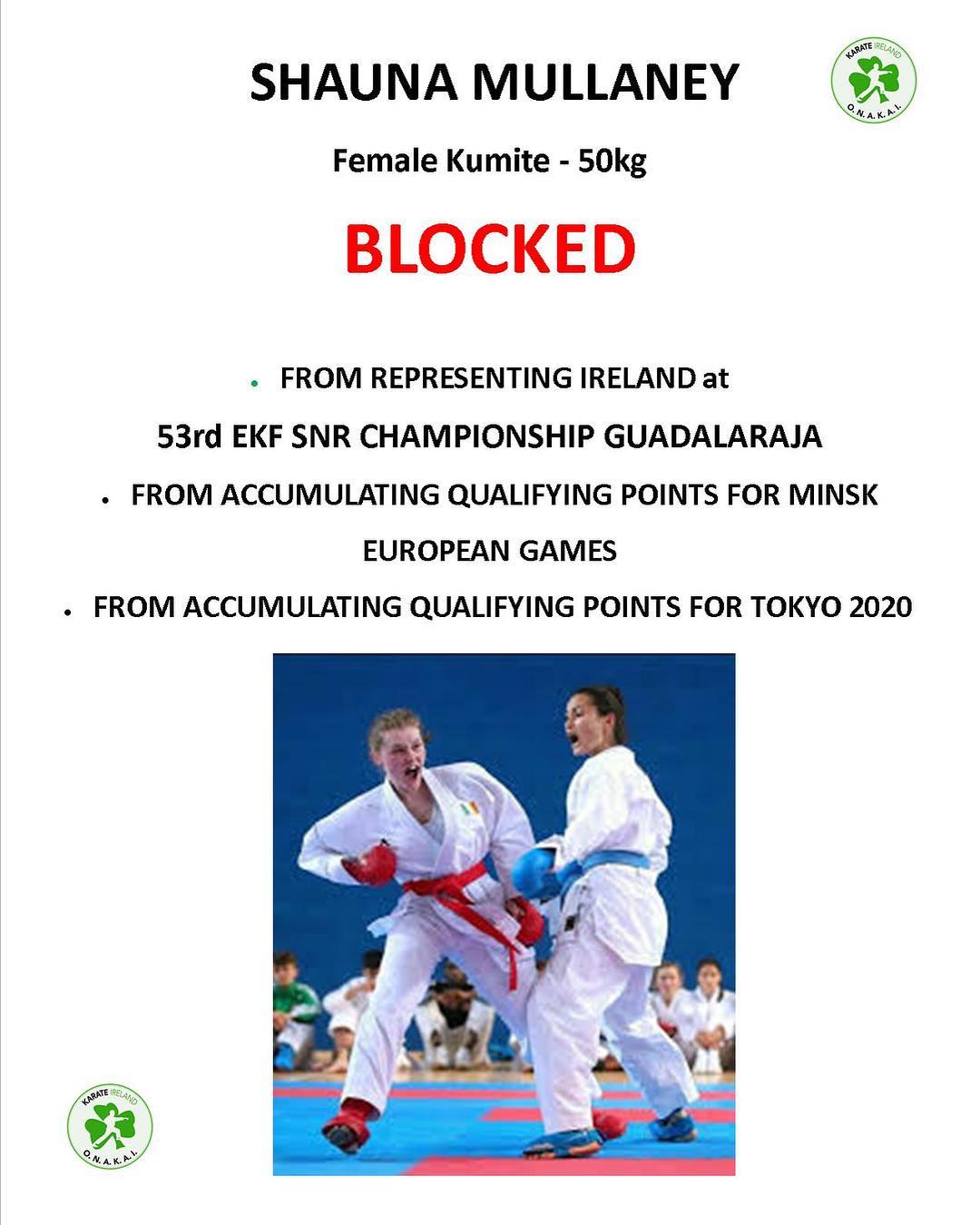 And as a result of this, Irish athletes including Caradh O’ Donovan and Shauna Mullaney were allowed to compete at the Europeans in Madrid. Allowed. Statement here from the WKF.