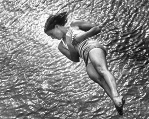“Pat—she has a lot of guts, and she crashed,” Lee said of her painful flops during practices. “Pat was not a natural diver. She had to work at it.”2 Lee underestimated McCormick’s determination and her relentless work ethic. McCormick was a wonder from an early age, having strongmen in Los Angeles’s Muscle Beach flip her up in the air where she would perform her acrobatics. There is a picture of her when she was no more than 10 years old holding up a well-built man who is standing on her shoulders, with well-defined muscles popping from her little arms and shoulders. She spent her youth at the beach and in the water, sometimes daring to jump off bridges.