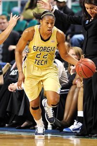 After averaging 22.3 ppg, 18.8 rpg, 8, 0 apg, and 6.4 blocks per game her senior season, being ranked the #15 high school senior in the nation by HoopGurlz.com, and the #13 by scout.com, Alex Montgomery selected Georgia Tech to continue her basketball career. At Georgia Tech, Montgomery continued her highly successful career by being named to the 2008 ACC All-Freshman team and the ACC All-Academic team, garnering ACC Rookie of the week honors twice, and ranking in the top 10 all-time in Georgia Tech history for points (335), rebounds (168), blocked shots (25), and steals (53) by a freshman. As a team co-captain her sophomore year, Montgomery was named third team All-ACC, led the team with 13.7 ppg, 6.7 rbg, and 31.1 minutes per game. As a junior, she was again named to the third team All-ACC, selected as the 2010 ACC Sixth Player of the year, and was a team co-captain for the second straight year. Montgomery finished out her senior year strong by being named State Farm Coaches' All-America Honorable Mention, the State of Georgia Women's College Player of the Year, Second Team All-ACC, and ACC All-Defensive Team. She led the Yellow Jackets to a school record 24 wins, an NCAA Tournament birth, and helped Georgia Tech win only its third tournamnet game. She led Tech in points her senior year with13.0 per game, and rebounds, with 8.6 per contest. She was second on the team with 81 assists and 73 steals. She finished out her career at Georgia Tech by being sixth on the all-time scoring list with 1, 565 points, third in three-pointers made with 237, fourth in rebounds with 837, fifth in steals with 226, and tied for second in games placed with 123. In the 2011 WNBA draft, Alex Montgomery was selected as the 10th overall pick by the New York Liberty.
