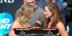 Friday night both UFC Champion Ronda Rousey and challenger Miesha Tate made weight for their rematch at UFC 168 in Vegas. The match will co-main event Saturday.