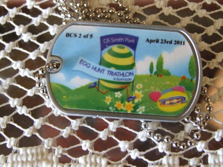 Above: Finisher's medal for the Egg Hunt triathlon.