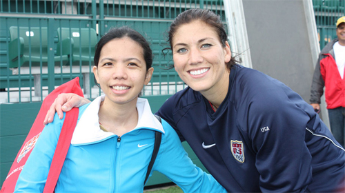 Above: In 2009, Kat (left) was the winner of Hope Solo Sister One Limited Edition sneakers. Check out the story. (Source: Nike Women)