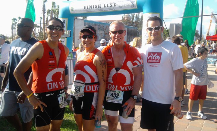 Above: On Your Mark athletes at Singer Island. Left to right; Chris Diaz, Lynn Smythe, Charlie Lockerson, Coach Matt Goforth. Photo by Lorie Lockerson.
