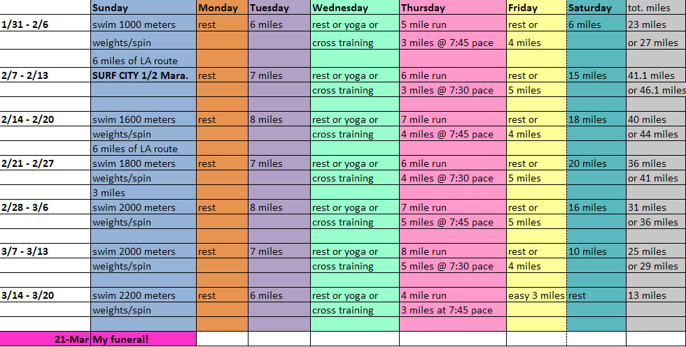 So since I decided to run the LA marathon instead of focusing solely on the Surf City half marathon as I had originally thought of, that means training has to be mixed up big time. No more short runs for me, especially with all the non-running I’ve been...more