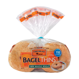 Everybody loves bagels for breakfast, but not everyone needs those big deli-size bagels all the time. Thomas’s Bagels Thins might be a better size for you! They have only 110 calories, and the 100% Whole Wheat variety has 21 grams of whole grain and 5 grams of fiber, which makes them good for your heart. Try them with peanut butter and sliced fruit, hummus and avocado, or make your own breakfast sandwich with scrambled eggs and sautéed veggies. They’re also available in Cinnamon Raisin, Everything and Plain varieties.