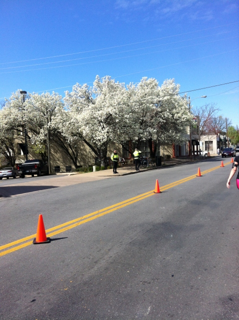 The miles kept ticking away and we entered into a neighborhood area and it was beautiful. The houses were my favorite kind! Big porches, all so unique and different, I loved the area. It was a lovely day out and with the spectators cheering us on, made for a special race experience. The big issue, which I knew would happen was that right after mile 3, my hip started to give me the dull pain and that’s when I knew I was in for a long day.