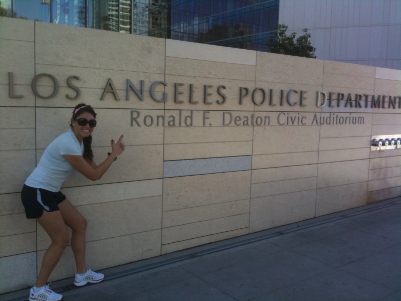 Then, being a lame-o I had to take this picture in front of the huge, new Los Angeles Police Department building. Seeing this building also means you are starting up one of the largest and most daunting hills of the course. It’s a fairly long hill and once we got the top I was fairly winded. The top also holds a pretty cool feature of LA, the Walt Disney Concert Hall. On the way up to the top of the hill, you pass by this great lake of LA! Who knew that such a nice lake exists in Los Angeles?