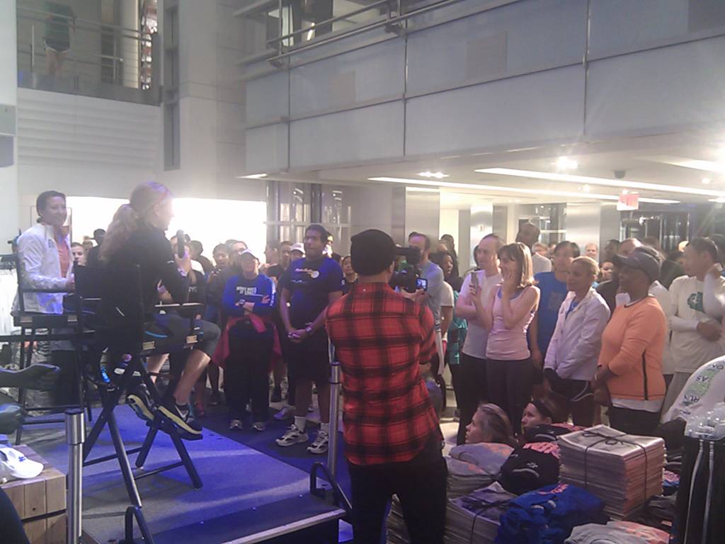 This is me at Nike Town attempting to give marathon advice to other runners when I've never done one. They went easy on me.