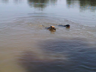 Why do you tease me so? Just throw it already.Now that it is summer, we go to the lake a lot so I can swim. It is not my favorite thing to do, but it is really refreshing and I don’t get so hot like I do when I play at the park. At first I was timid and would not go out very far. We have gone a lot, though, and I have been able to practice. I can go all the way to the middle of the lake! Of course, I only go in the water when somebody throws my favorite ball and I have to get it. I really don’t see the purpose of just going in for no reason.