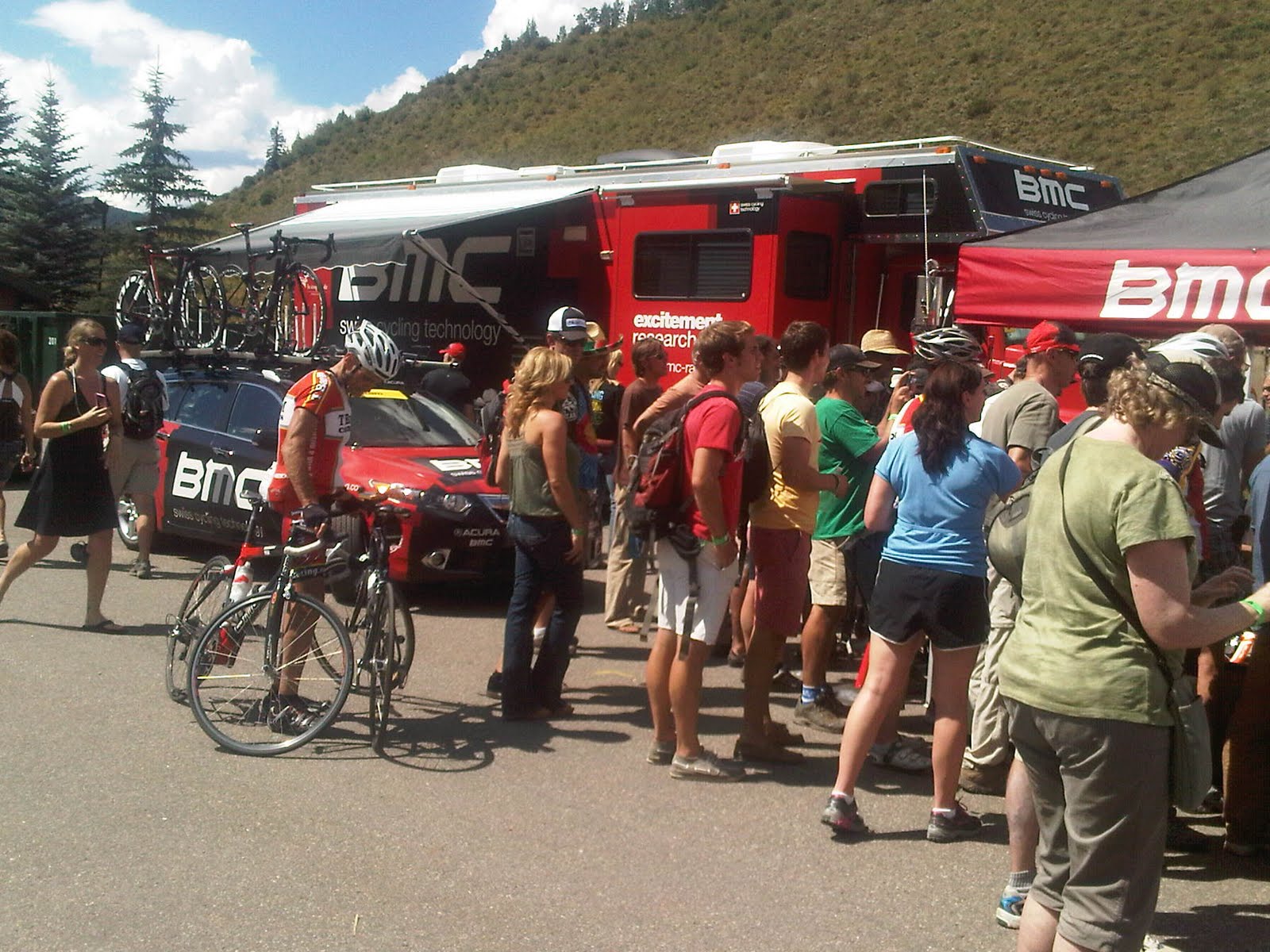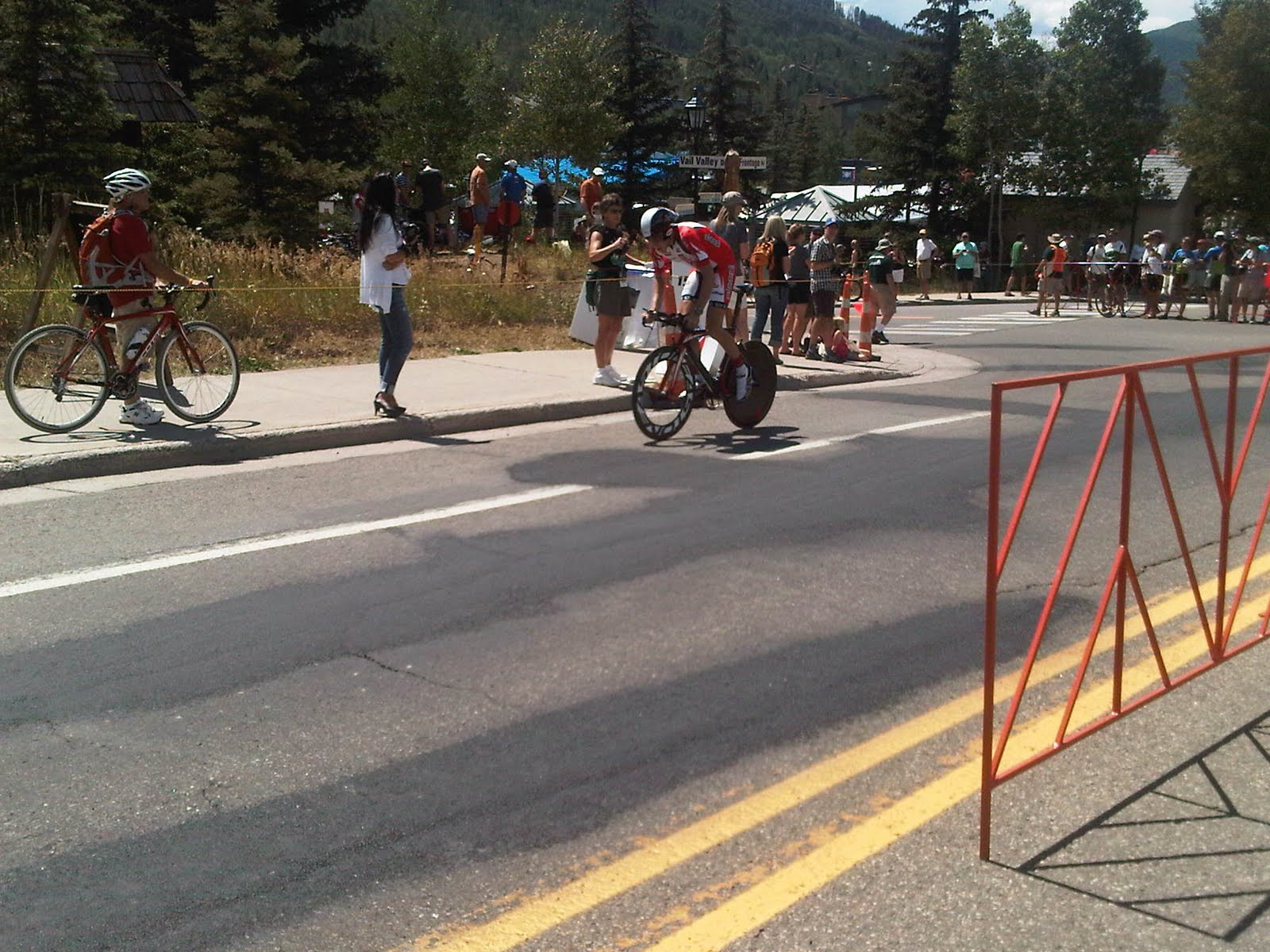 My friend Lara emailed a few weeks ago me asking if I wanted to drive up to Vail to watch the time trial for the brand new Colorado bike race. I responded with an enthusiastic yes. What a terrific opportunity to observe the best cyclists in the world. I figured I could learn something useful, have fun, and see all of the latest gear. Plus, this legendary 10 mile time trial is entirely uphill and gains almost 2000 feet to the top of Vail pass. The altitude at the top is 10,000 feet. It was sure to be a suffer-fest for the flat-landers.