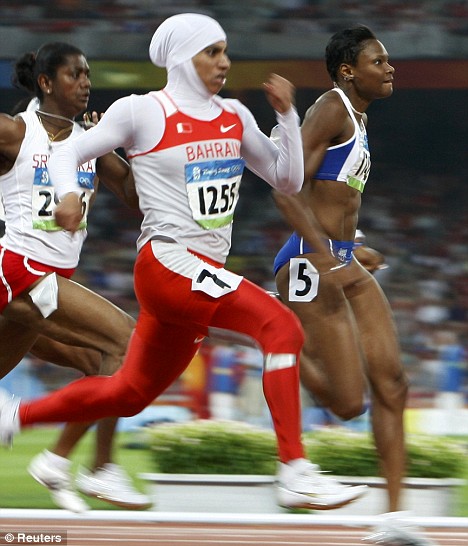 Ruqaya Al-Ghasara. [Source].Many Muslim women athletes may have been relatively ignored by media until due to the fact that participating members did not wear hijab, despite representing countries with a Muslim majority. Bahrain’s Ruqaya Al Ghasarawas the first women to represent her country in head-to-toe hijab in 2008.She is certainly not the only Muslim woman to succeed in Track and Field events. Habiba Ghribi competed and was also used heavily as a political tool and pawn by post-Arab Spring political movements in her home country of Tunisia. But that story is far less appealing than that a woman running while wearing hijab. Nor does Ghribi’s appearance highlight western society’s obsession with Muslim women’s choice of clothing. In fact, Habiba Ghribi, like many of her fellow athletes, does not wear hijab, yet she is also Muslim.In mainstream media, it seems far more desirable to post pictures of covered women competing alongside less covered women. Perhaps it provides Western media outlets a sense of self-congratulation that they are accepting and including identifiably Muslim women in their coverage. History will tell us that using hijab-wearing athletes to represent all Muslim women athletes is unfair and unrealistic.Without diminishing the importance of inclusion of hijab in sport – which is absolutely necessary – it is important to recognize when and how the distinction is made between the needs of hijab-wearing athletes and non-hijab-wearing athletes. Issues of concern for both are similar: fighting cultural expectations, low funding from state, lack of support and exposure from community, outdated facilities etc.We understand that clothing should not be a deterrent or obstacle for women to participate. This summer, the politics of hijab in sports were very heavily considered, particularly as the International Football Association Board struck down a very criticized and exclusionary hijab ban. As an ardent football supporter and player for 30 years, I know firsthand that a huge barrier to women and girls playing soccer in North America in proper leagues for the last 20 years has definitely been due to the strict adherence to clothing regulations. I, as much as anyone, was elated when a prototype for hijab was allowed in FIFA sanctioned play.