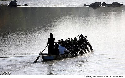 Following photos by Hossein Baharloo show the women rowing team practicing on the beautiful Zayandeh Rud river in the historic city of Isfahan in the shadows of the ancient Sio-seh-pol bridge.