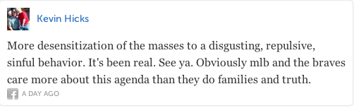 For the most part it seems like Braves fans are happy that their team supports ALL of their fan base but it seems the team also lost a few fans along the way: