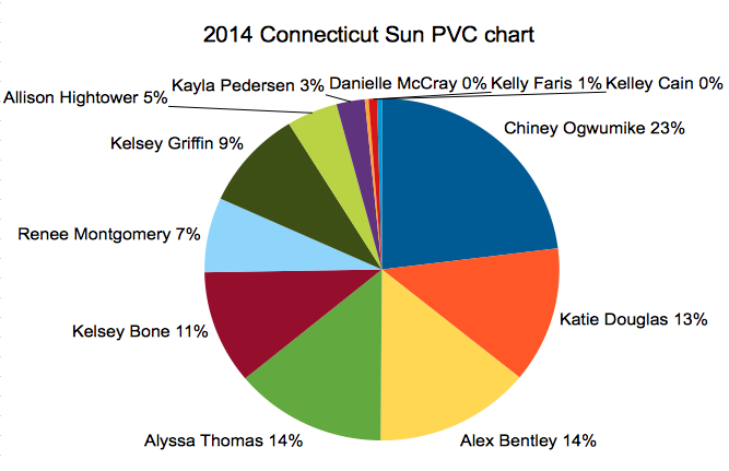Ogwumike is a rookie responsible for 23.05% of the production of her team who led her team to within three games of the playoffs, albeit last in their conference. That's an amazing accomplishment for a rookie, even if nobody looks upon the Sun's 2014 season as a high point for the franchise.