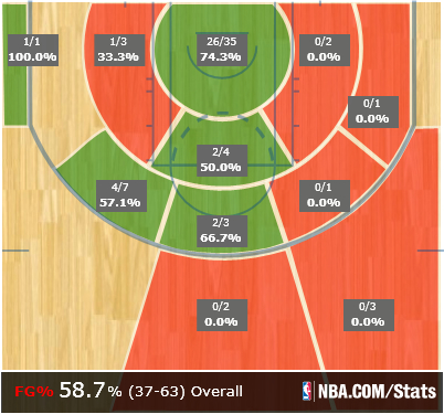 The Mercury seemed a bit rattled down the stretch of Game 2, picking up technical fouls and fussing with the refs but there was a poise and a focus to the Mercury team on this Tuesday afternoon in Phoenix. 21 assists and putting all five starters in double figures really allowed the Merc to showcase the things that got them to this point. Diana Taurasi played like the greatest player in the world with 31 points --including a 50-foot third quarter buzzer-beating three-pointer-- along with seven assists and five rebounds. Griner worked her way to 22 and 6 but most of all, did a fantastic job of finding players for layups out of the double team, finishing with four assists. Here's a look at their shot chart in the fantastic Game 3 win: