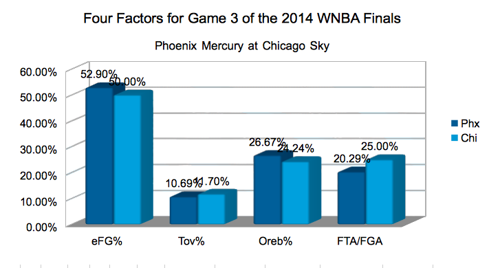 Composite Four Factors statistics for Games 1-3 in the 2014 WNBA Finals.
