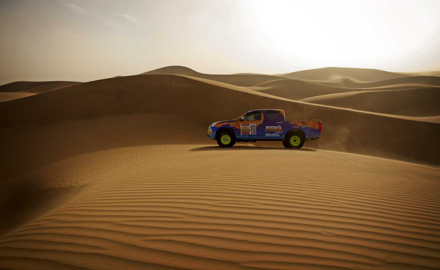 March 28, 2013 (Foumz Zguid, Morocco) - Fierce competition was in the air during the final leg of the 2013 Rallye Aïcha des Gazelles. The two day Marathon Leg consisted of the famous Chegaga dunes, navigation challenges for even the most experienced teams and a surprising twist with the two top contenders suffering mechanical failures. The teams called in for mechanical assistance resulting in a 200 penalty point each and an instant shake up in the top ten standings.