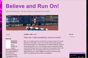 posted by Believe and Run On! I'm a student-athlete at the University of Wisconsin-La Crosse. I'm graduating in May with a BS in Organizational and Public Communication and a minor Recreation Management. I love running most days. Steepling is my forte, or at least I'd like to think so;). My goal is to strive for women's equality in athletics and in life. |