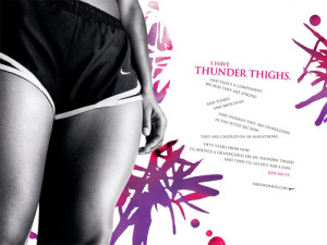 The pictures are from Nike ads I just love! This clothing manufacturer not only produces awesome sports clothes but they encourage a better way to view your body. For more, click here.