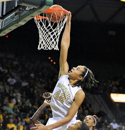 Finally please don't promote Brittney Griner as something that should in any way represent where women's basketball is going. Griner may some day be deserving of such a reputation, but right now she needs to work on recovering from her disgraceful blind side punch that broke the nose of a Texas Tech competitor and put her out for the rest of the season last year. All of us should hope Griner does a lot of growing up. Until she does the last thing we should be doing is holding her up as some kind of hero for little girl roundballers to emulate. That is exactly what women's basketball doesn't need.
