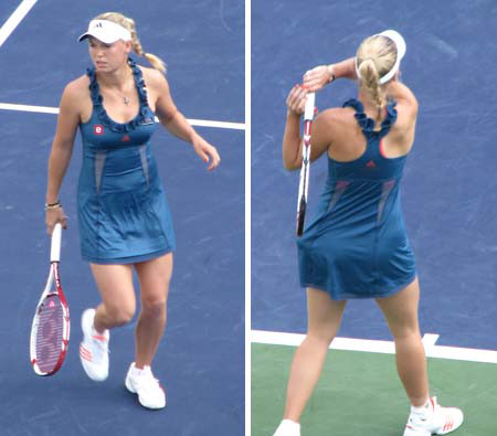 Here’s what Wozniacki had to say about her U.S. Open fashion: “My dress is more simple than some of the other dresses I’ve had. It’s really nice and has a clean cut. It doesn’t have too many ruffles. The material is fantastic to play in and I think it flatters my body.”