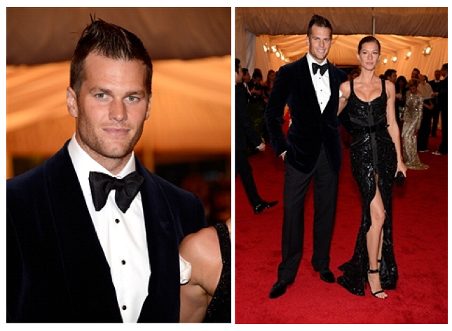 New England Patriots QB, Tom Brady, dressed in a Tom Ford tux and accessorized with Gisele on his arm. Brady’s ever-evolving hairdos have included a buzz cut, a ponytail and a Bieber shag among others. Last night he debuted yet another new ‘do, a style that was reminiscent of Little Rascals’ Alfalfa.