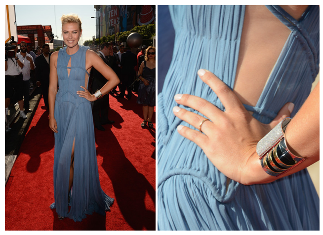 The ESPYS “Best Female Tennis Player” was also one of the evening’s best-dressed females. Maria Sharapova looked statuesque in a dusty blue gown from J. Mendel, with daring cut-out details to further accentuate her frame. She accessorized with a Giuseppe Zanotti clutch, Jimmy Choo shoes, and a cuff and pave diamond stud earrings by Lara Bohine.