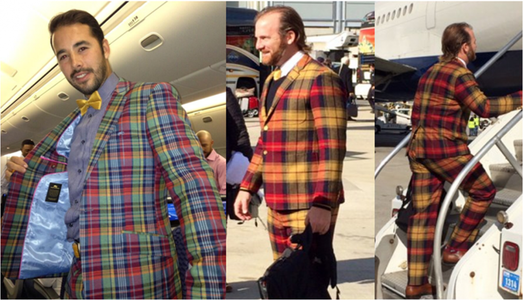 Both Andre Ethier and Ryan Dempster spent time in the MLB fashion spotlight due to their similar style mishaps. Los Angeles Dodgers outfielder, Ethier, traveled to Game 6 of the NLCS dressed in a pastel, plaid patterned suit. A yellow bow tie and belt and a colorful pair of shoes finished off the outlandish look. Not to be outdone, Boston Red Sox pitcher, Dempster, traveled in a plaid suit of his own. His red, yellow and navy design was complemented by a navy vest and yellow tie.