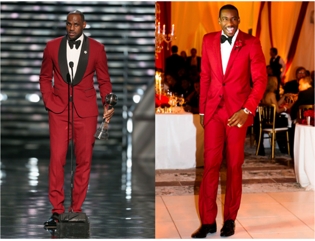 LeBron James hit the ESPY Awards stage, while donning a custom oxblood tuxedo from Waraire Boswell. Amar’e Stoudemire wore a custom Lanvin design in a similar bold hue to his wedding reception. The fashion-conscious athletes share a stylist in Rachel Johnson.