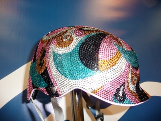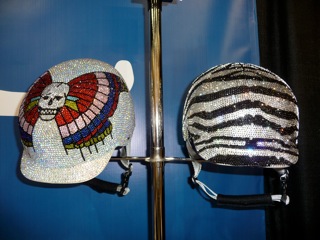 Saca makes these designs with Swarovski, Czech and Korean crystals that catch the sun for a dazzling downhill display! Liners come in fur, velvet and dryfit. They cost anywhere from $200-$2000 but will protect your head in grand style. To order, go to her website or call 916-804-4037.