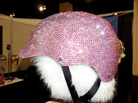 So by now we all know wearing a helmet is a wise thing to do. (Read my earlier post on helmet use). California even toyed with a law to mandate its resorts to require it, but Gov. Schwarzenegger vetoed the legislation, saying it would place an unnecessary burden on resort operators without any assurance of fewer injuries and fatalities. Nevertheless, it just makes sense to protect your head. So why not make a statement while doing it - a brilliant one. Check out these high-style helmets handcrafted by Dareece Saca for Ice Couture.