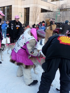 As of this writing, DeeDee Jonrowe, 57, is in the top 10 for the 2011 "Last Great Race." A cancer survivor and crowd favorite, DeeDee, her dogs and their handlers were decked out in pink at the ceremonial start in Anchorage on March 5. "The volunteers and residents of rural Alaska are an important element of the experience, and I am blessed to continue participating in this race."