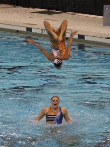 I expected more glitter. Recollections of Olympic watching brought up images of sparkly synchronized swimmers, yet I knew full well the sport involved more than just glitter, sequins and heavy eye makeup. And I was pretty excited to check out the elite level of the sport in person as the U.S. Collegiate Synchronized Swimming Nationals were in the region this weekend.