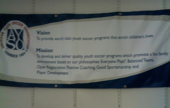 The AYSO mission and vision statements are posted throughout the National office.