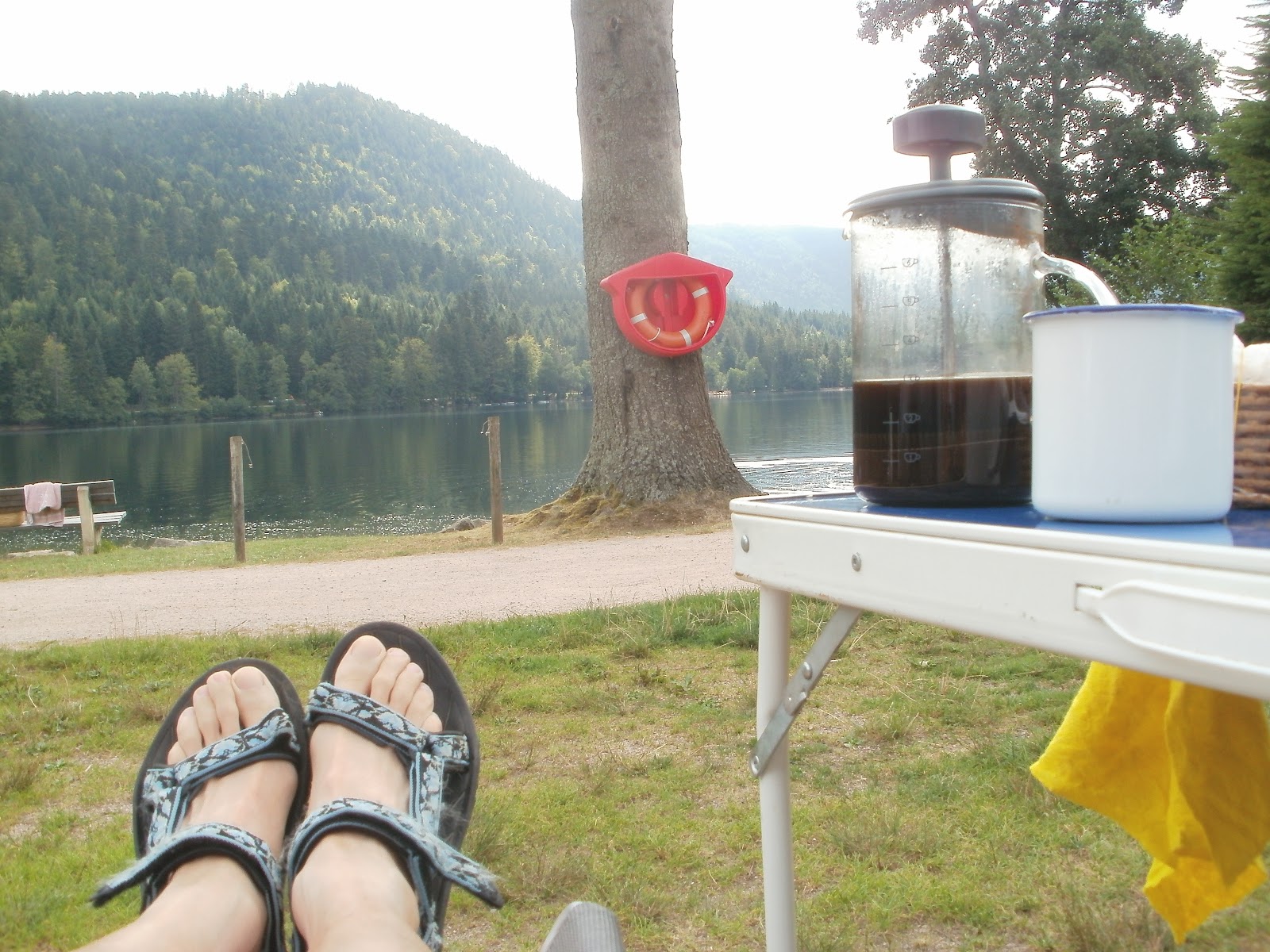 Just back from 11 days in the Vogezen - a very hilly, beautiful region in France - for a pre-cross-season training camp! It was such a wonderful experience! Not only did it get to climb forever every day but the pre/post playtime was just as rewarding. Before every ride, Jonas and i got to sit outside of our camping right on the lake (xonrupt-longemer) enjoying our breakfast of fresh coffee, fruit, and bread (baguette of course) with a bit of muesli. And after our ride, we'd head into the water to play.