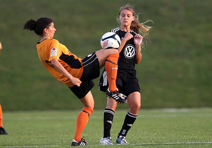 It was an almost archetypal match for DC, as despite having one of the highest-scoring offenses in the W-League the team typically spends long periods struggling to score goals. That was the case throughout the first half as the forwards failed to break through Dayton’s bunker. Lianne Sanderson noted that after the match: “I think it’s difficult now because obviously we’re the team to beat in the division, and I think a lot of teams come here and sit behind the ball. It’s difficult to break down.”