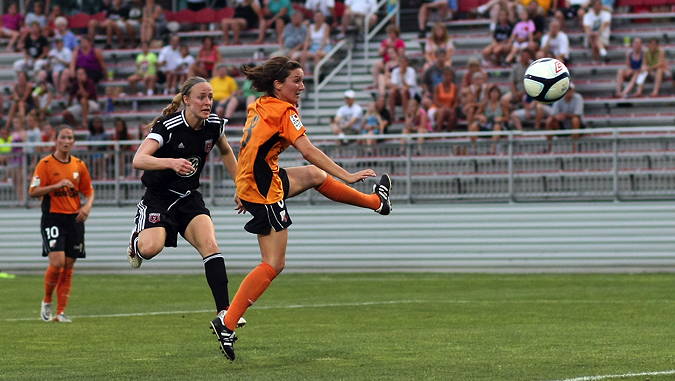 On one of the hottest evenings in DC history, a season-record 703 fans showed up at the Maryland Soccerplex Stadium to watch the DC United Women play the Dayton Dutch Lions, the last match Becky Sauerbrunn would play on domestic soil before joining the United States Women’s National Team for the upcoming Olympics in London. They would not be disappointed, as the Black-and-Red cruised to a 4-1 victory keyed by a Sauerbrunn goal early in the second half.