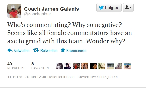 The above tweet can no longer be found on her twitter timeline, but this Retweet of her former Atlanta Beat James Galanis remains: