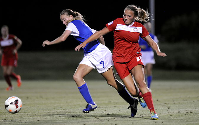 It took just 9 minutes for the home team to get on the board, left flank defender Sam Lofton sending a cross in that forward Ashley Herndon fired in past goalkeeper Tina Cardamone.