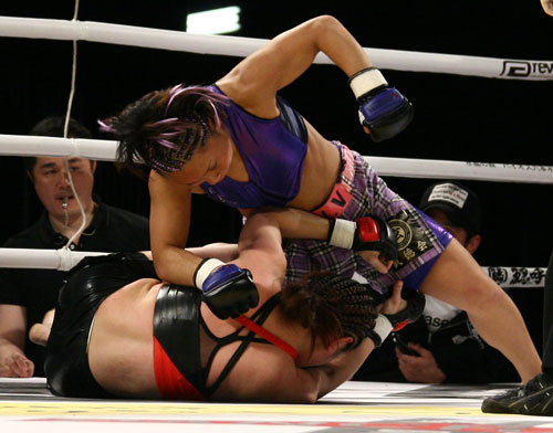 Yamaguchi (top) pounds Tomomi (bottom) Courtesy GBring.com