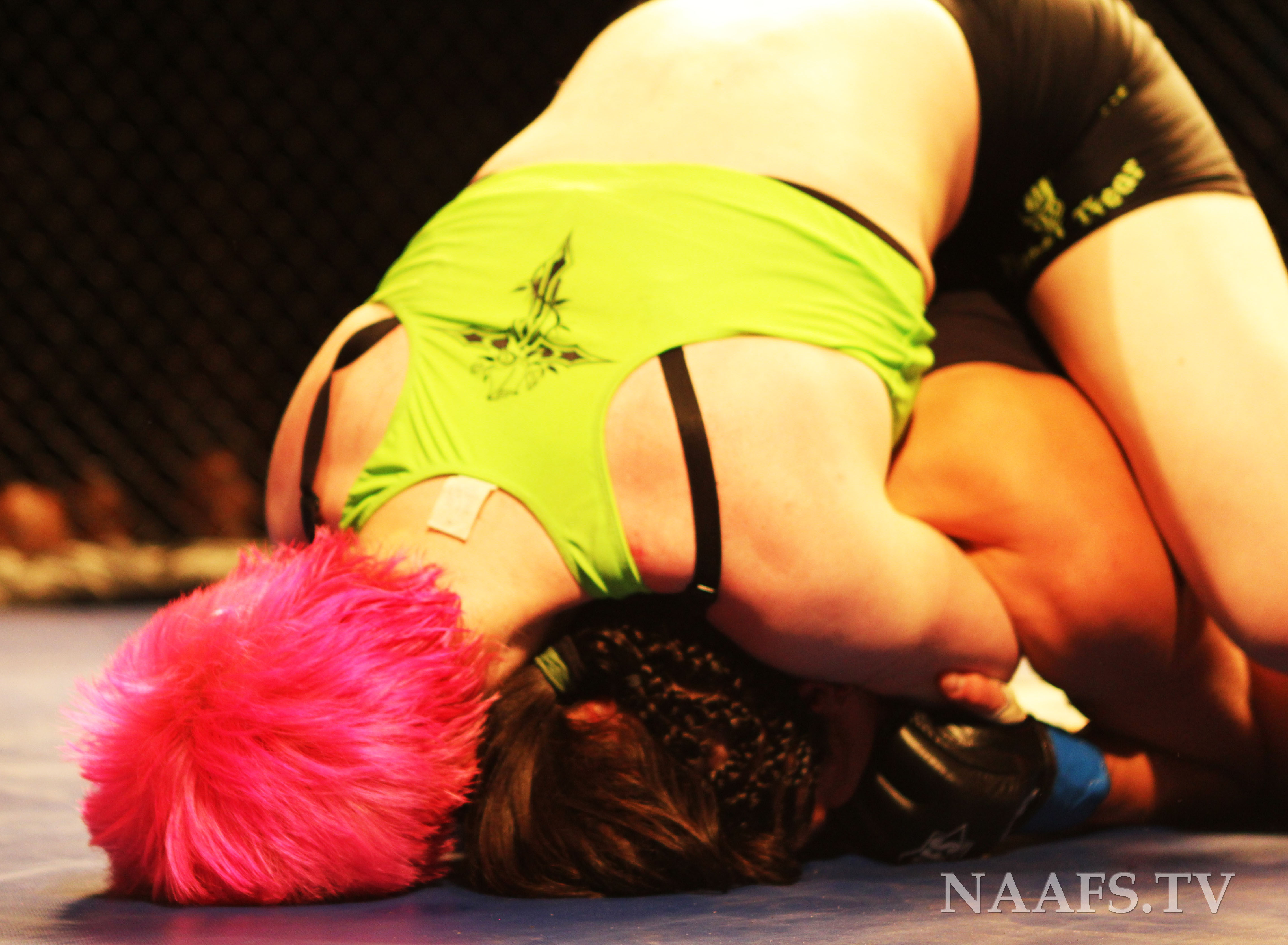 Daly (Top) secures a rear naked choke on Eye (bottom)