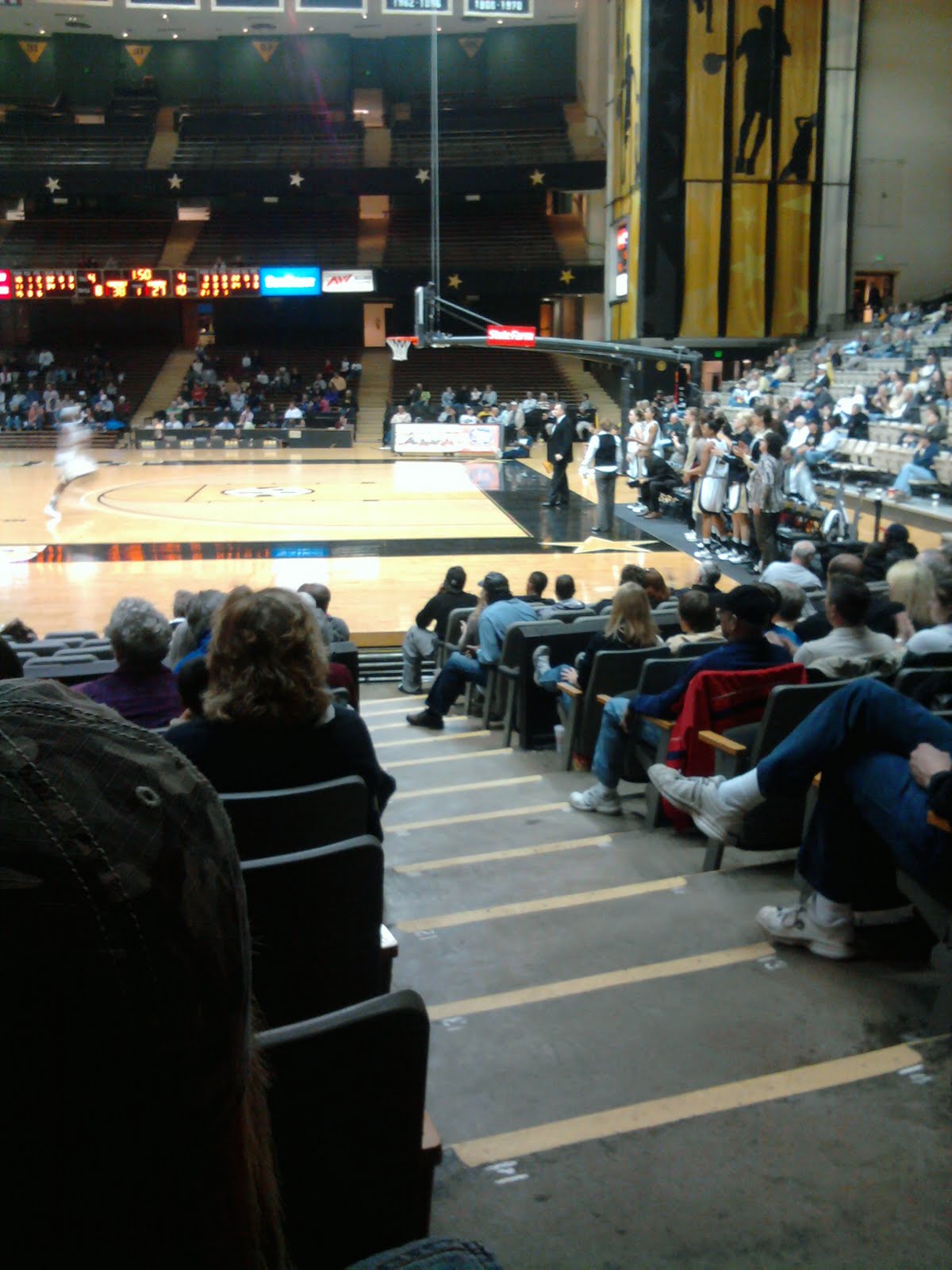 The benches in Vanderbilt are on the baselines, not the sidelines. This was Vanderbilts bench. Vandy beat Quinnepac, 111-53.